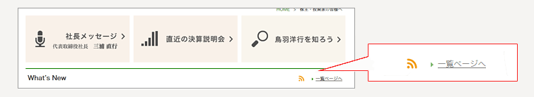 ※RSSとはXMLベースのフォーマットで、webサイトの見出しや要約などのデータを記述したものです。主にサイトの更新情報の公開などに使われています。また、閲覧に必要なRSSリーダー、RSS対応ブラウザは無償で入手できるものが多数公開されています。